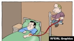 One of the most prominent cartoonists in Serbia, Predrag Koraksic Corax, works closely with RFE/RL's Balkan Service. Once a week the service publishes his work without comment. As part of his weekly offering, he has focused on the situation in Ukraine. No translation is required.