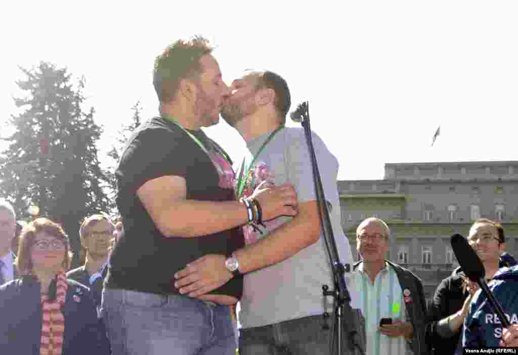 The two-kilometer march began in front of the main government building in Nemanjina Street and passed along Kneza Milosa Avenue and by parliament before ending in front of Belgrade City Hall.