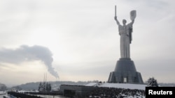 This huge Soviet-era statue towers over which city?