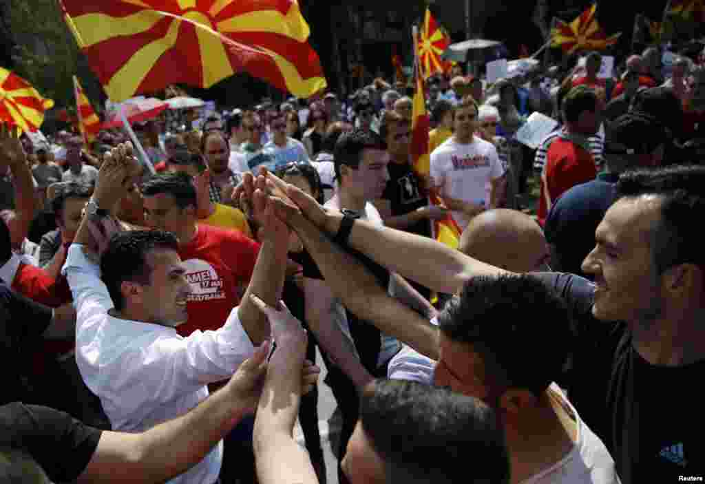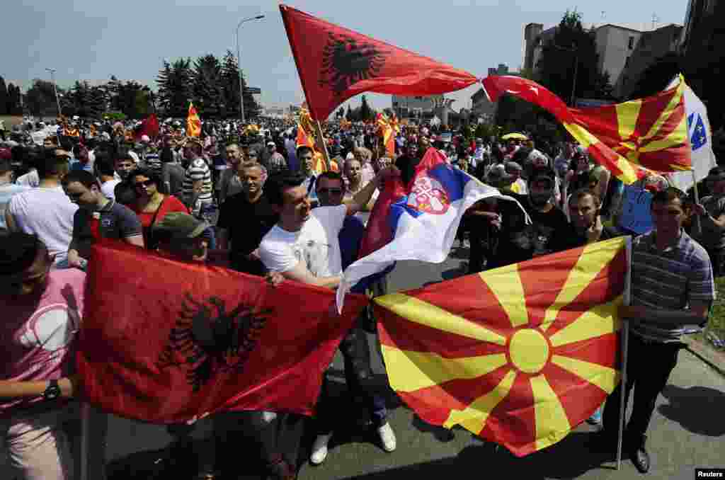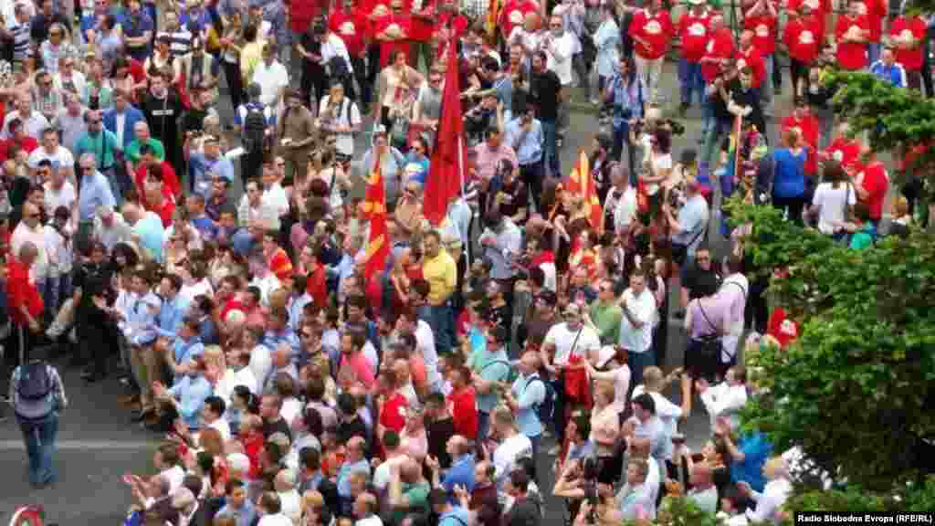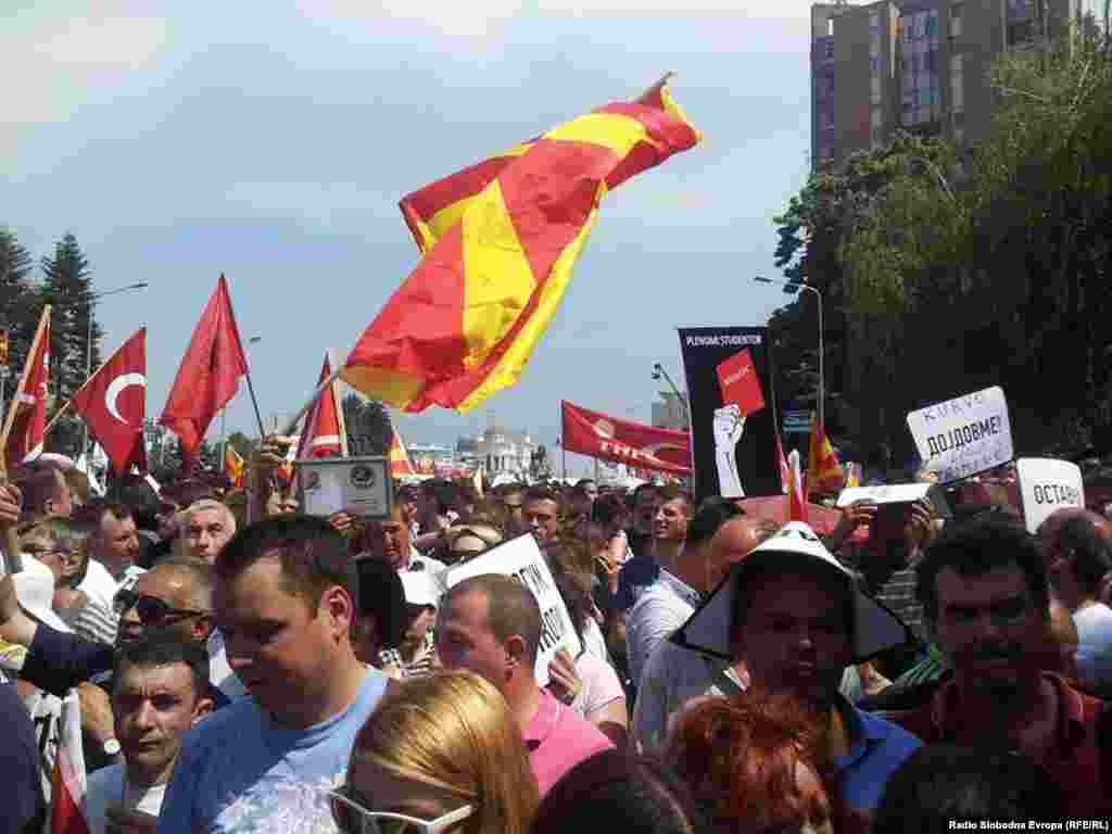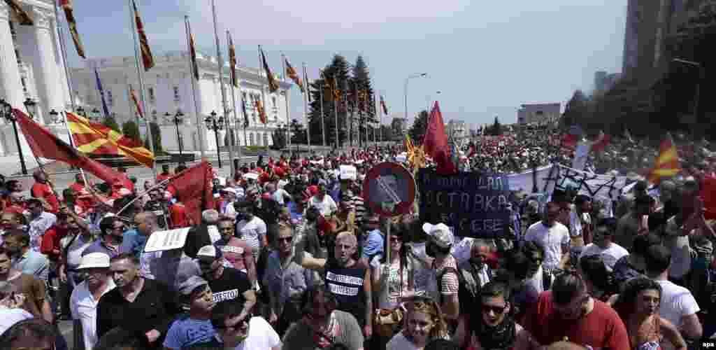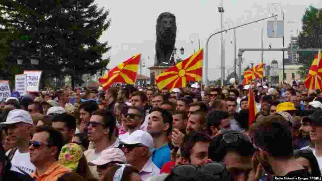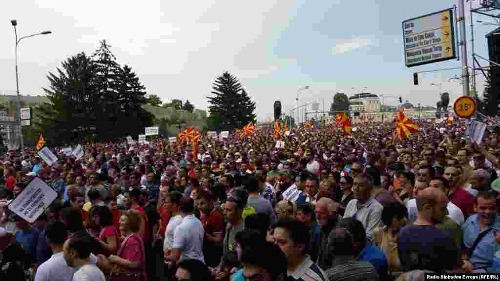 Tens of thousands of demonstrators have gathered in Skopje from across Macedonia for an antigovernment rally in the capital.