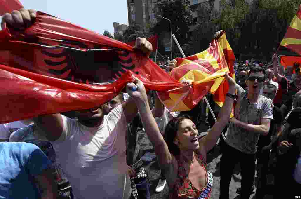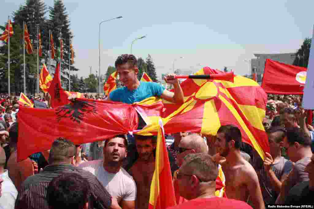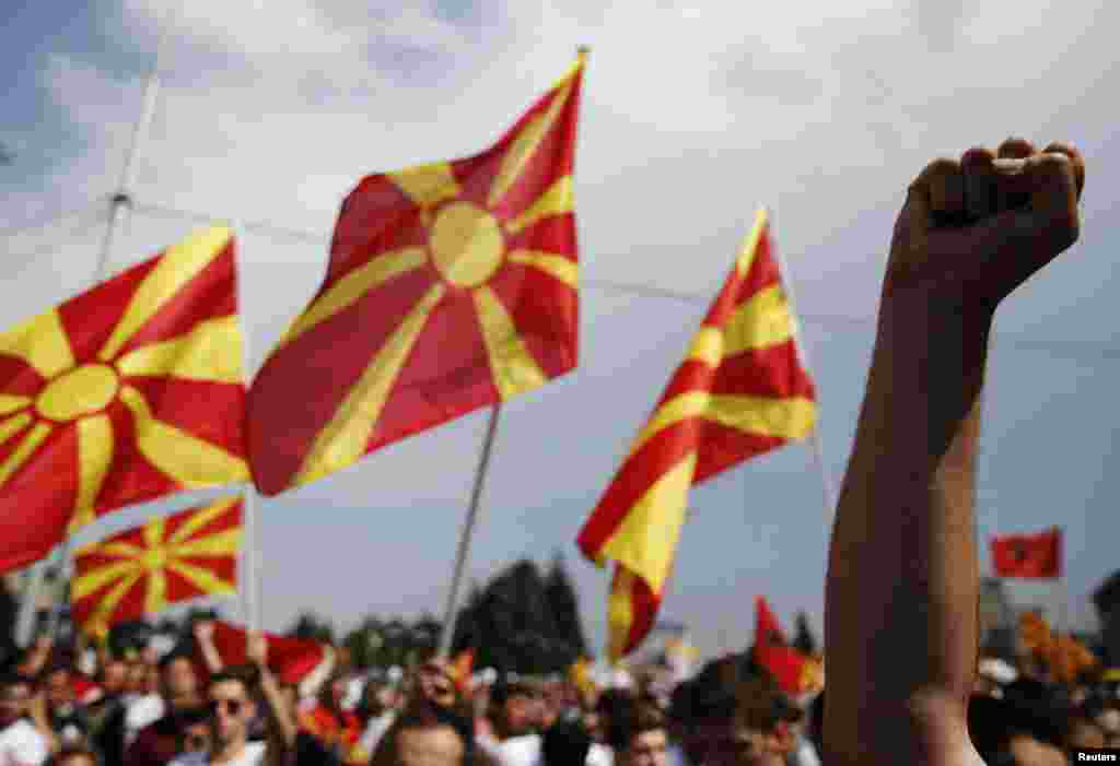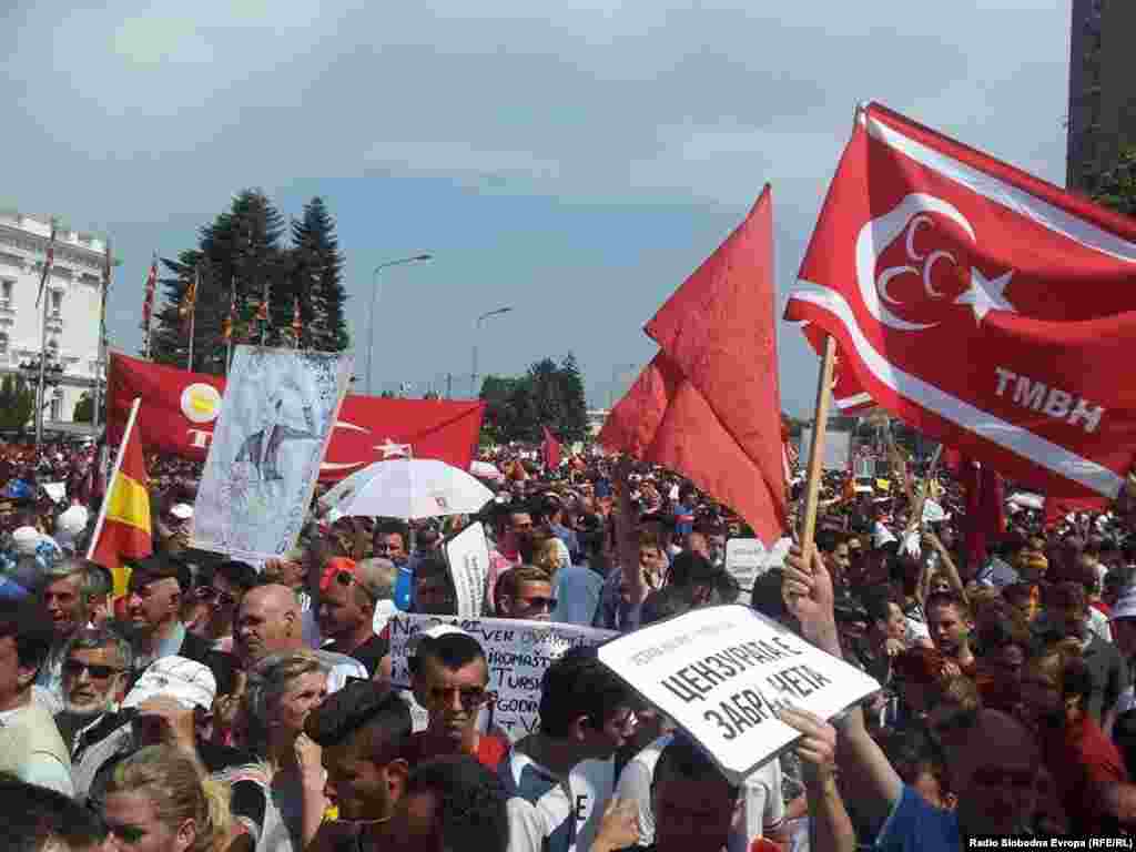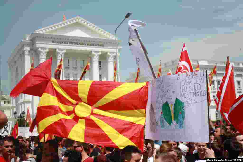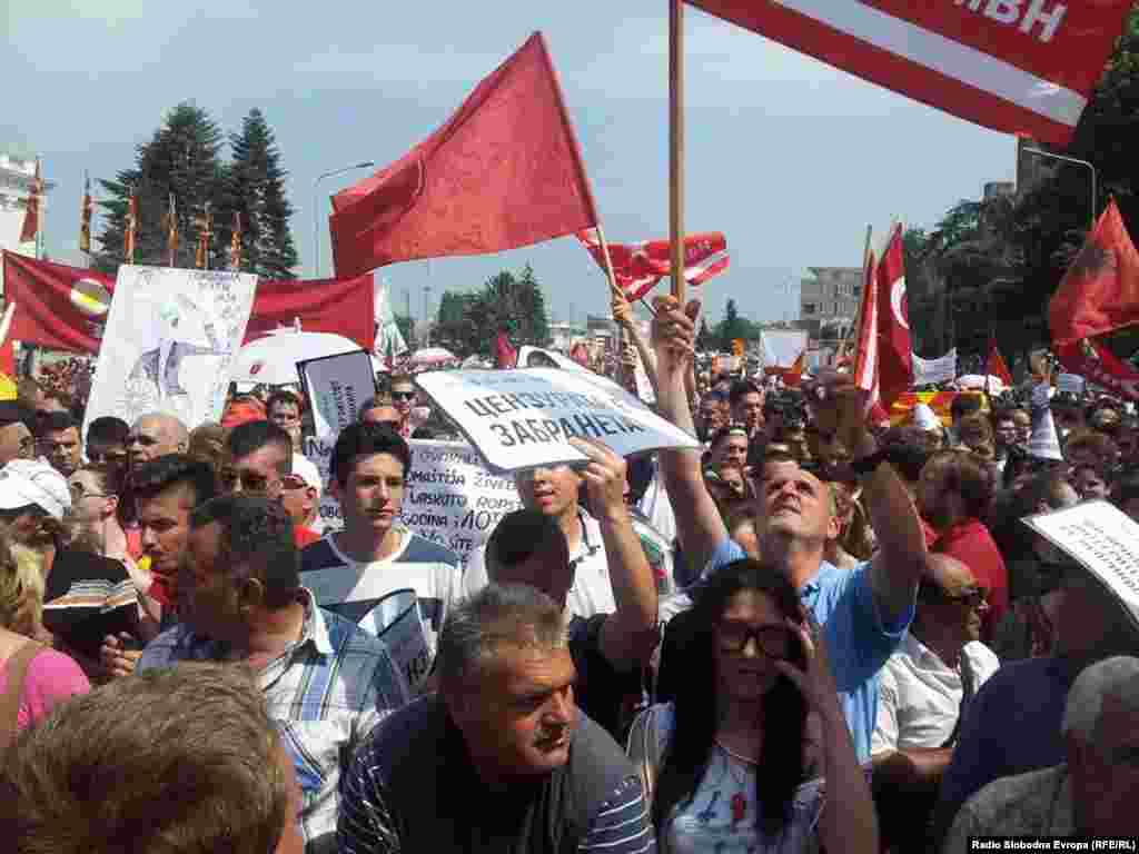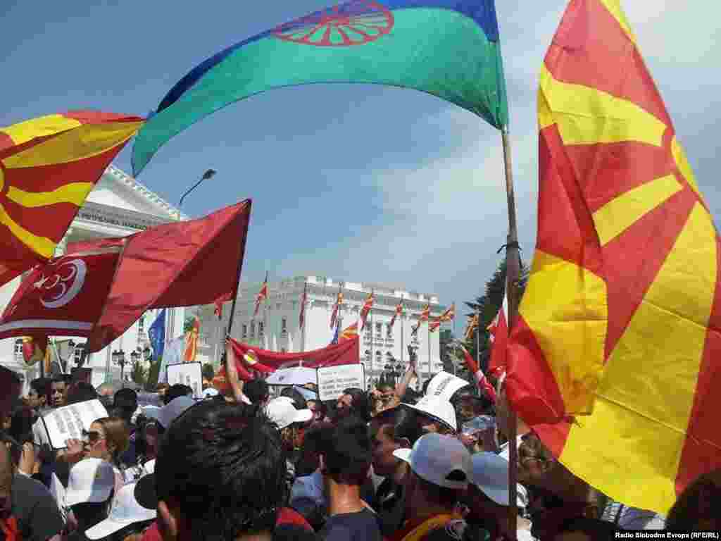 Tens of thousands of demonstrators have gathered in Skopje from across Macedonia for an antigovernment rally in the capital.