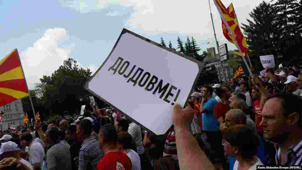 Tens of thousands of demonstrators have gathered in Skopje from across Macedonia for an antigovernment rally in the capital.