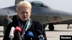 Lithuanian President Dalia Grybauskaite says the deployment of NATO forces in the Baltic country is sending a "very clear" message that the military alliance stands "strong and united."