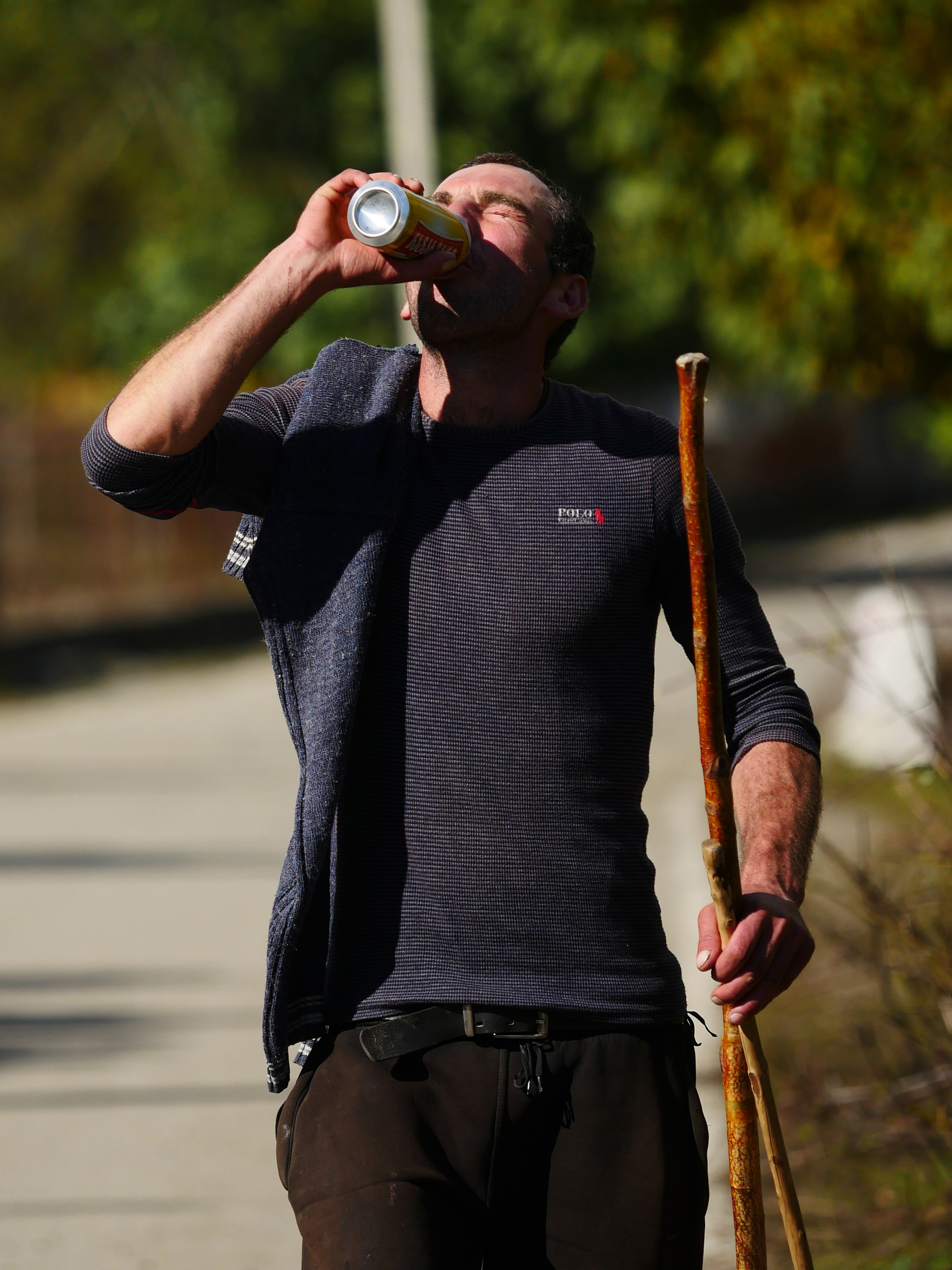 At the base of the pass the men pause for lunch -- a bag of salty sheep cheese, bread, a tin of stewed fish…