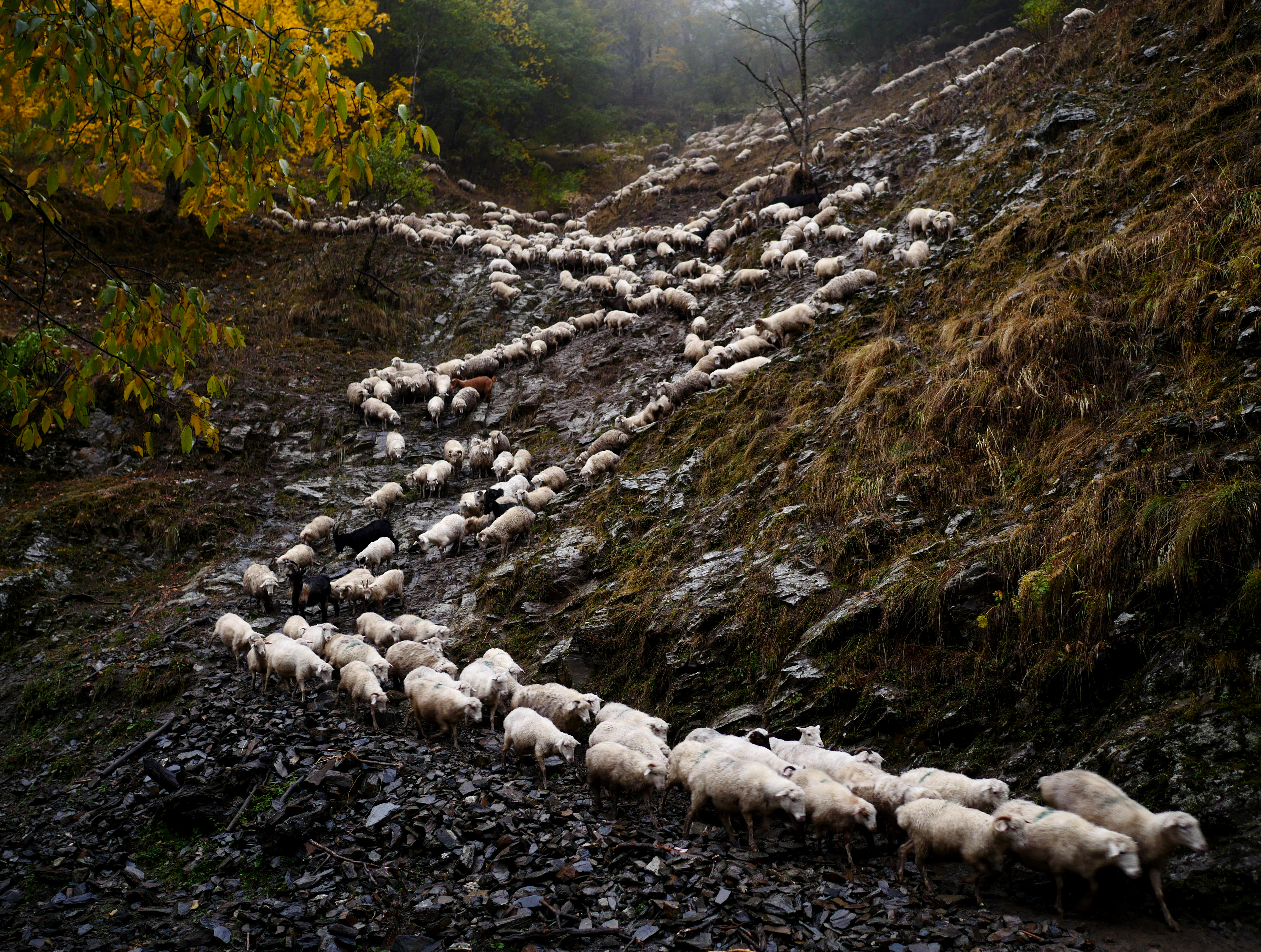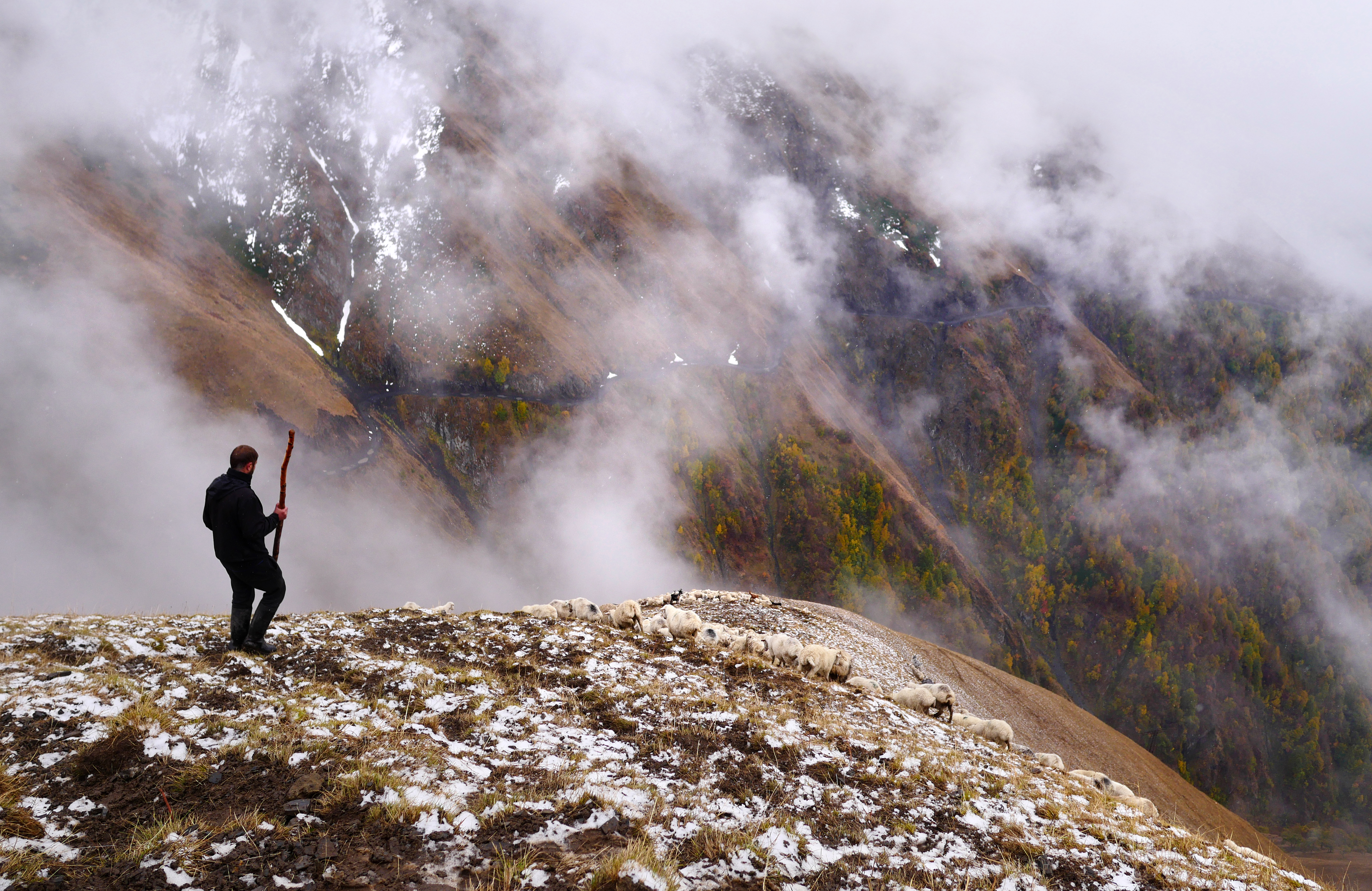 Summers offer lush green grass for grazing, but autumn comes early to Georgia's Tusheti mountains. By early October, local shepherds are rounding up their flocks and moving out before winter takes hold.