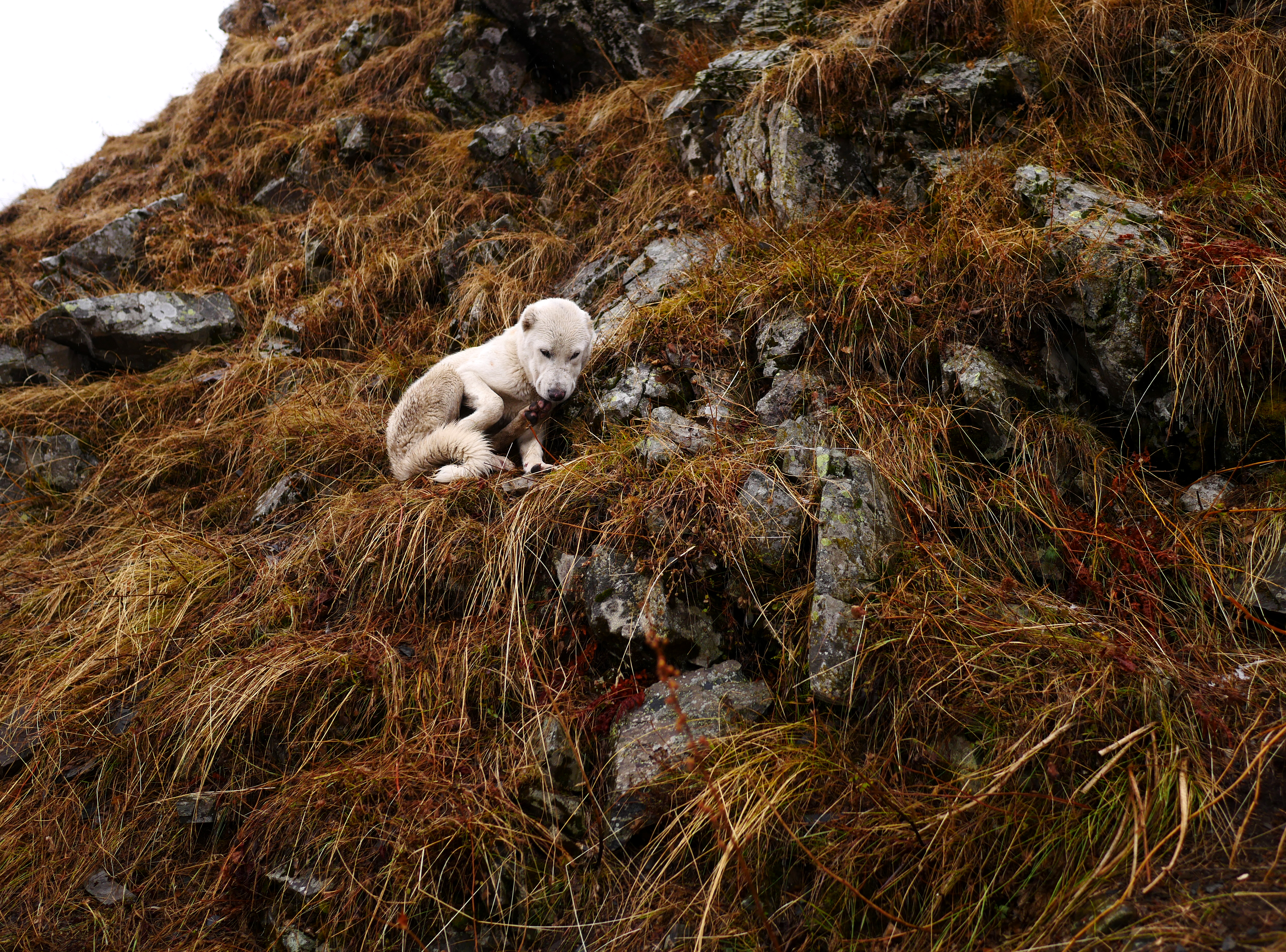 Little Georgik is exhausted, and yelps in fright at some of the steeper sections of the mountain. The men help carry him over the rougher sections of the path.