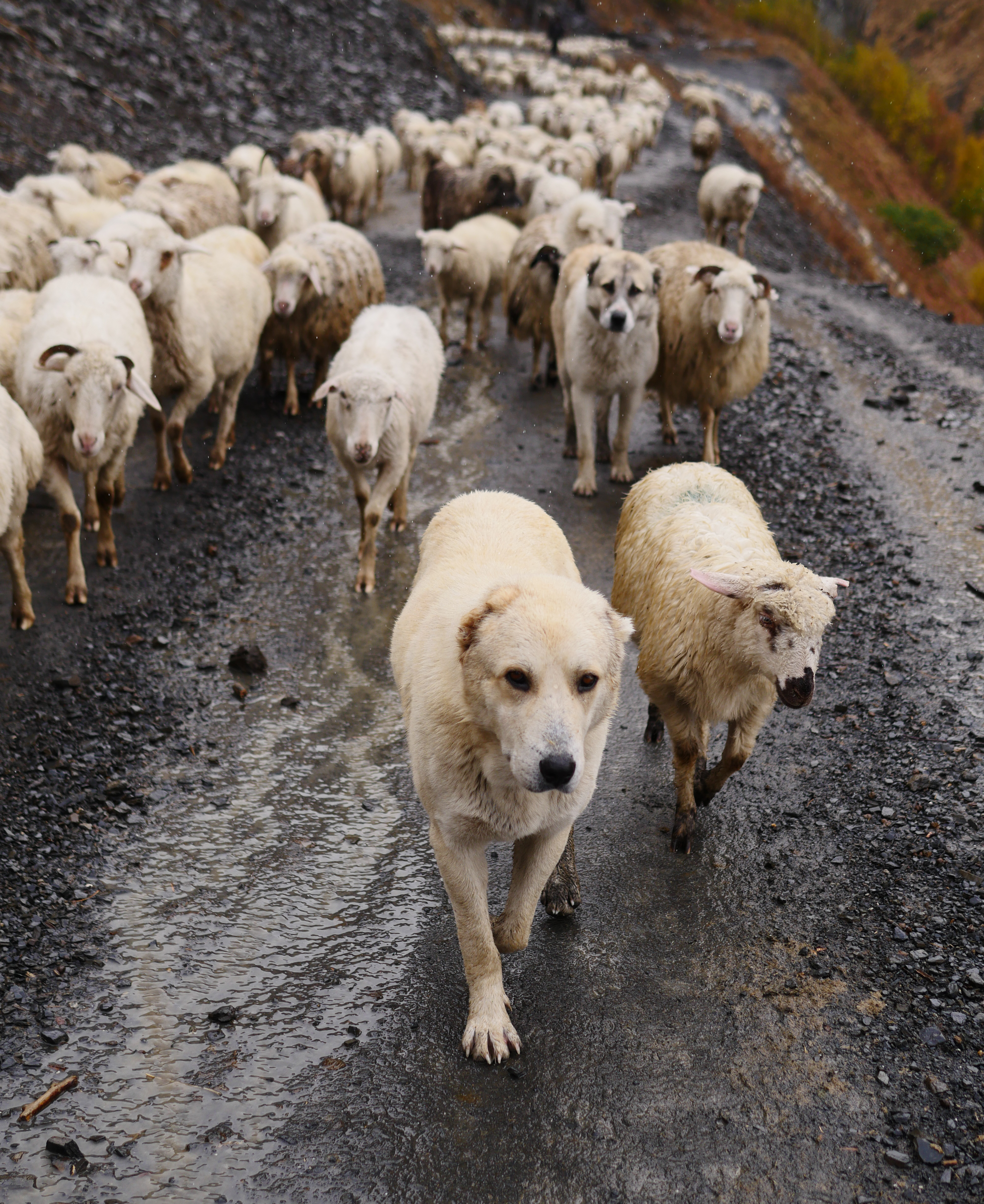 The Georgian shepherd is a tough, ancient dog breed that helps keep the sheep in formation and protects them from wolves.