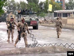 Canadian soldiers of NATO's ISAF mission secure the site of multiple suicide bomb attacks in Kandahar in early April.