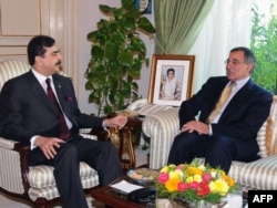 Pakistani Prime Minister Yousuf Raza Gilani (left) with CIA chief Leon Panetta in Islamabad on November 20