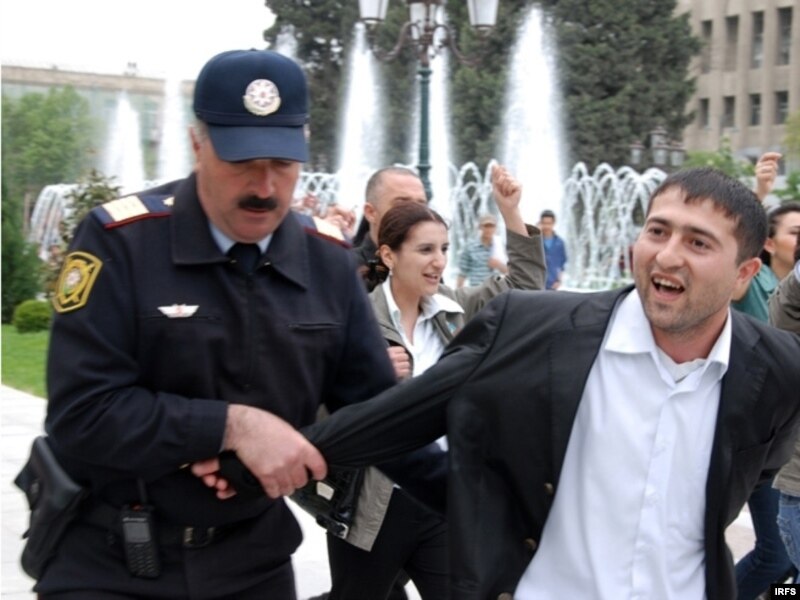 Both Novruzov and Elmanli ended up being detained by police, along with some 50 other protesters.