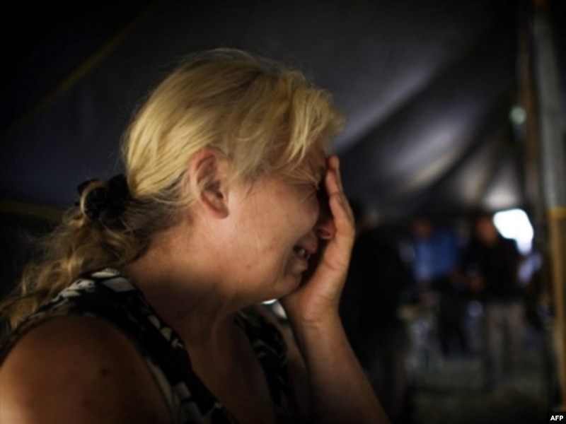"We were in church. I was with my child, and while we were praying bombs started dropping on the cement plant in [the nearby town of] Kaspi, just after midday," says one woman, who asked that her name not be used.