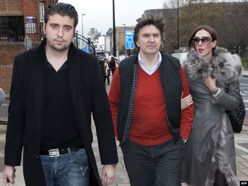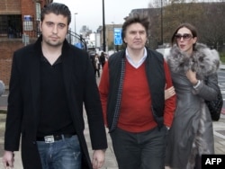 Ejup Ganic (center) is escorted by his son and daughter as he leaves a London police station on March 12.