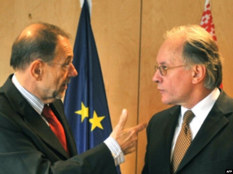 Opposition leaders Alyaksandr Milinkevich and Alyaksandr Kazulin -- himself one of the last political prisoners to be freed -- told the European Parliament on October 8 they fully supported the EU's change of policy.