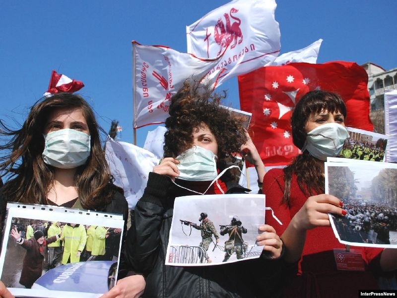 Young people criticizing Saakashvili four months after police forcibly dispersed a crowd in November 2007.
