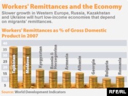 "A number of our countries -- Tajikistan, Moldova, for example -- have very, very high dependence on remittances," says Pradeep Mitra, the World Bank's chief economist for Europe and Central Asia.