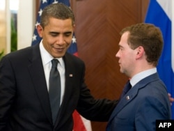 U.S. President Barack Obama (left) and Russian President Dmitry Medvedev in Singapore in November 2009.