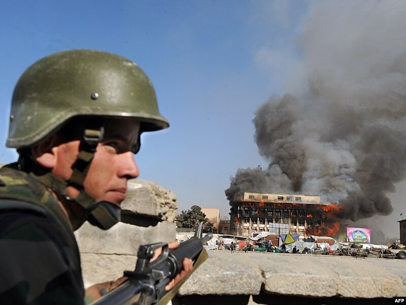 Taliban spokesman Zabiullah Mujahid told Radio Free Afghanistan that 20 Taliban fighters, including suicide bombers, were involved in the attack, which he said targeted the presidential palace and government buildings.Speaking to reporters in New Delhi, U.S. special representative to Afghanistan and Pakistan Richard Holbrooke condemned the attackers as "desperate" and "ruthless."