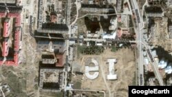 Using Google Earth, it's possible to see two buildings that appear to represent Aliyev's initials in Azeri.