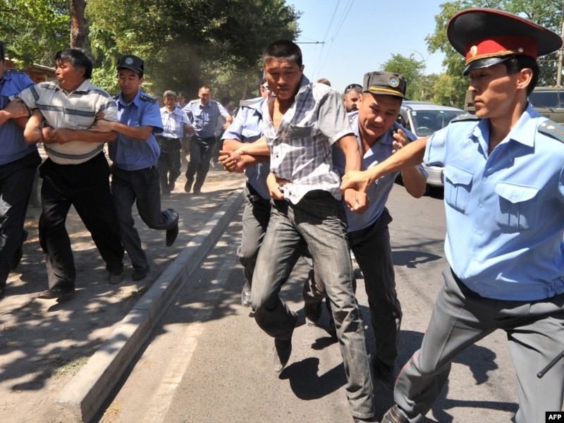 About 40 demonstrators were arrested at an opposition rally in Bishkek on July 29.