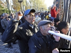 In another part of Bishkek, one of the 24 parties that competed in elections but failed to win any seats -- the Butun (United) Kyrgyzstan party -- held a protest outside the Birinchi Mai Court that is still reviewing the party's challenge to the election results.