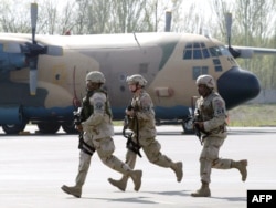 Scenes from outside Manas air base, which hosts hundreds of soldiers from the international coalition battling Taliban and Al-Qaeda-backed fighters in Afghanistan, about 1,000 kilometers away. (Video by RFE/RL Kyrgyz Service correspondents Mirlan Toktaliev and Sabyr Abdymomunov; shot with the permission of Manas authorities.)