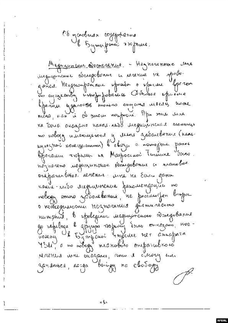 "My medical appointments and examinations are not carried out. Repeated requests to be allowed to see a doctor have been essentially ignored," Magnitsky said in a handwritten note to prison officials, made available to RFE/RL's Russian Service (see above).