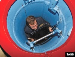 Medvedev, accompanied by Defense Minister Anatoly Serdyukov and top brass, toured the submarine built in 1978 and armed with intercontinental missiles capable of carrying nuclear warheads and joined the crew for a tea party.