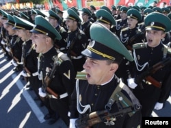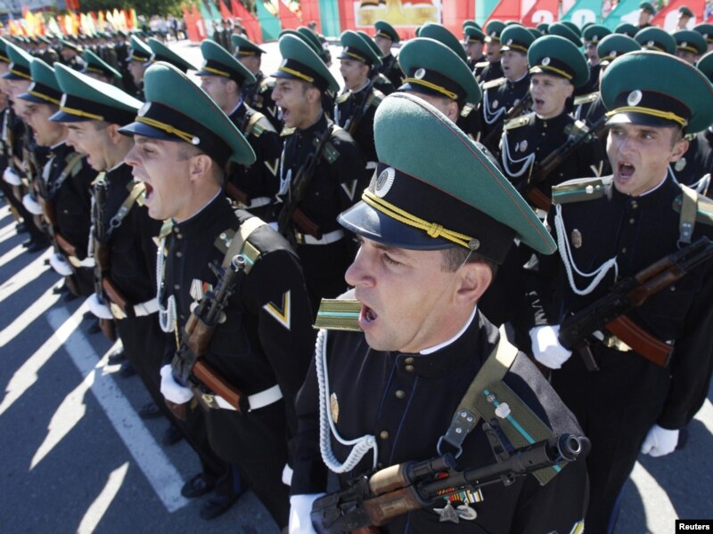 Soldiers of the self-proclaimed separatist Transdniester region take part in a military parade during Independence Day celebrations in Tiraspol on September 2.