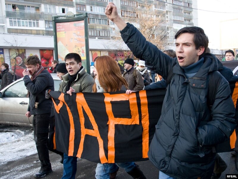 "March of Dissent" in Moscow before pro-Kremlin youths assaulted participants.
