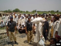 Displaced South Waziristanis receive rations in Dera Ismail Khan, in Pakistan's Northwest Frontier Province