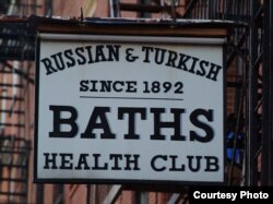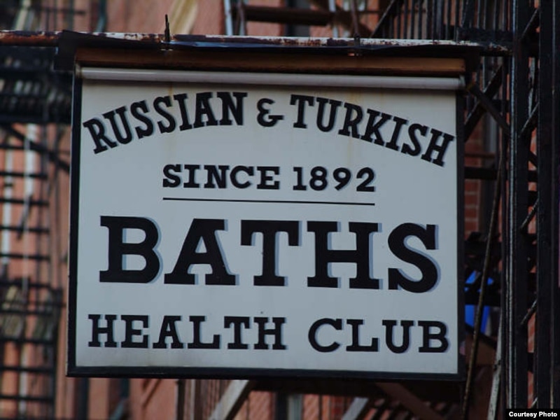 It's a sign that says "Russian Baths" in bright red, with the Russian translation in blue below it. The words are on a white background, and together, the three colors are those of the Russian flag, as well as the U.S. flag. Maybe there was no need to give the place a more distinctive name than "Russian Baths" when Israel Odessky and his partners opened it in 1980. Indeed, it was the first banya in Brooklyn.