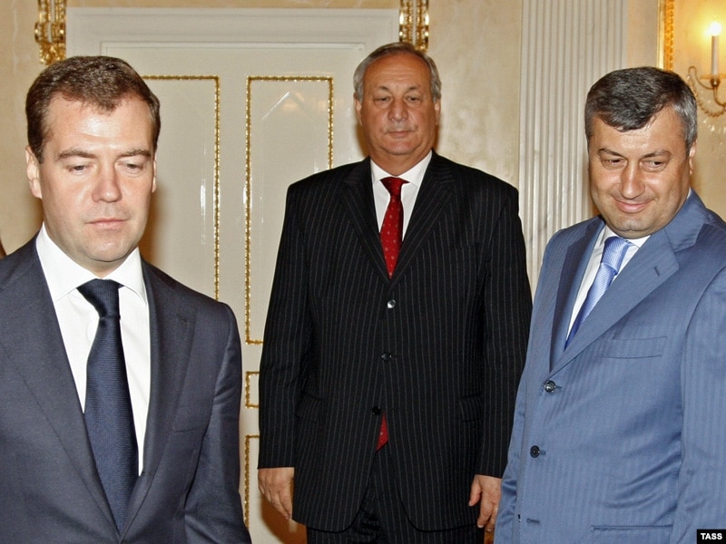 Russian President Dmitry Medvedev spoke to reporters after meeting in Moscow with the leaders of the breakaway provinces, South Ossetia's Eduard Kokoity and Abkhazia's Sergei Bagapsh.