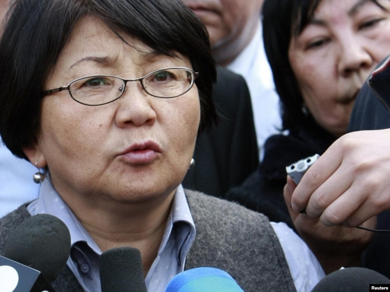 The 59-year-old moderate, a former key Bakiev ally who's served as foreign minister and ambassador to the United States, announced she'd just spoken to Putin, the first head of state to call her. Her words were met with cries of "We're with Russia!" from the mostly poor, provincial crowds.