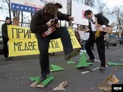 Environmental activists protest in front of the Russian Olympic Committee following Russia's request to host the Winter Olympics in Sochi.