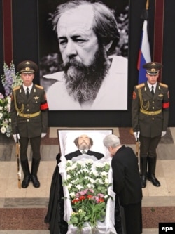 Hundreds of mourners, including Russian President Dmitry Medvedev and other top officials, gathered under a gray sky to pay their tribute to Solzhenitsyn's literary talent and unwavering crusade against totalitarianism.