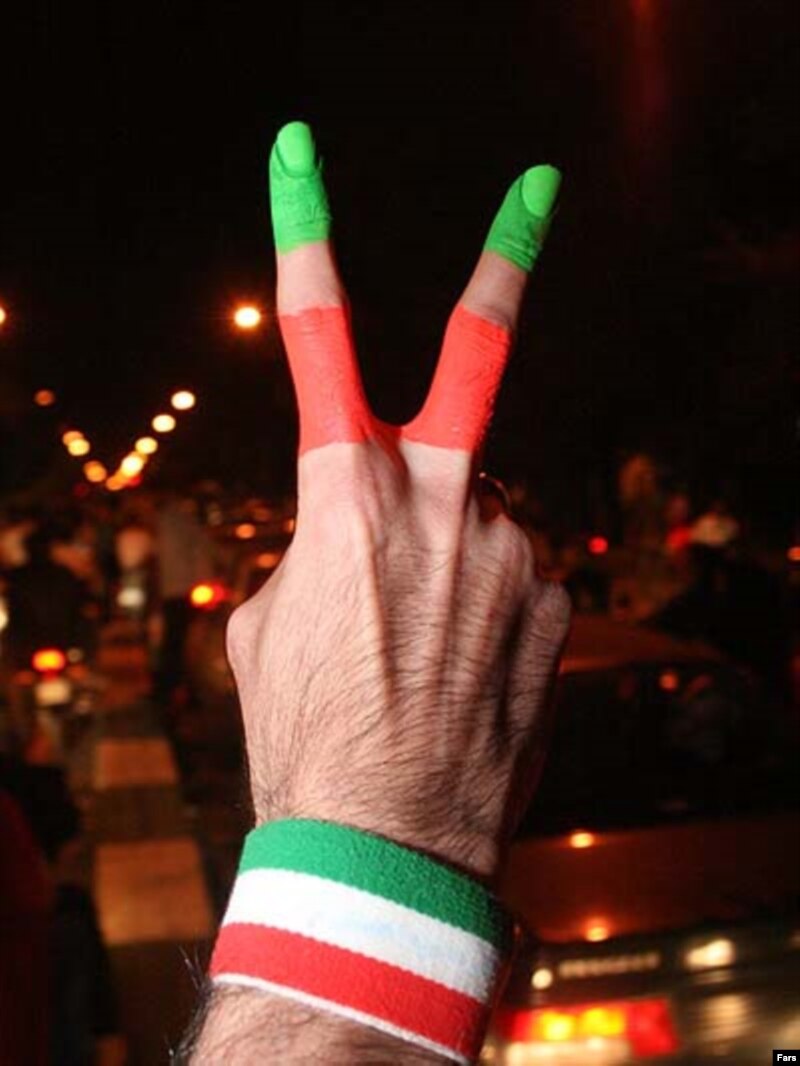 The reformist shouted slogans against Ahmadinejad and carried placards reading "lies are forbidden."