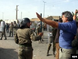 His wife and children were screaming for help and grabbing the driver’s legs, trying to pull him back into the car. When the guards started beating the car with their clubs and breaking the windows, the crowd started chanting “velesh kon” ("leave him alone") and charging towards the car.