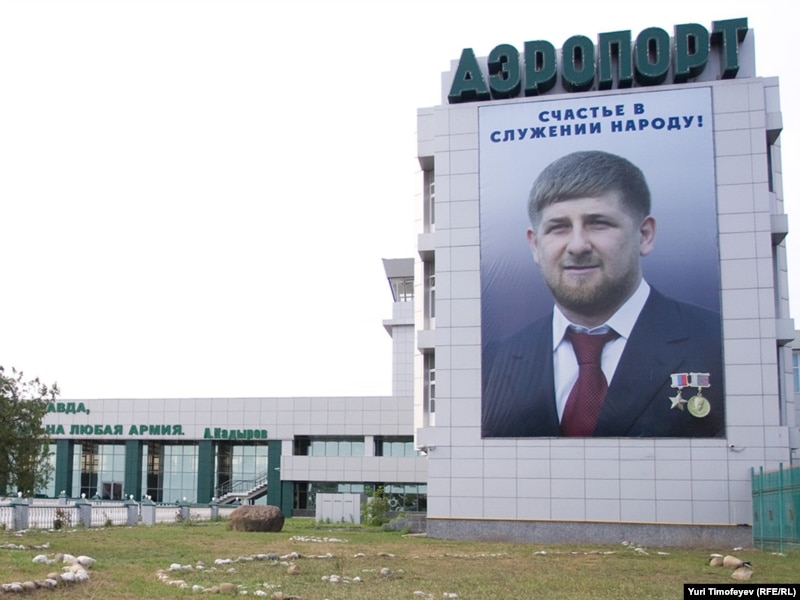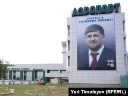 "Why do I need my portraits everywhere? I have all the authority I need," says Kadyrov. This poster greets vistors at Grozny's airport.