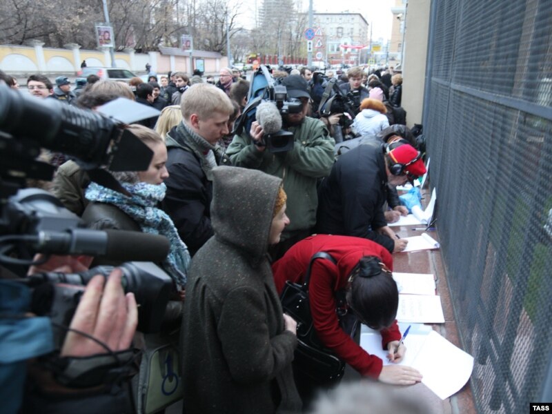 In Moscow, a demonstration was held outside the central police headquarters on Petrovka Street. Hundreds of journalists, students, activists, and others have signed an appeal to Medvedev, posted on the Russian culture website openspace.ru. Citing the recents deaths and beatings of reporters, it says "journalists are an indicator of the state of society."