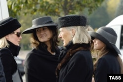 Members of the Romanov family attend the arrival ceremony of the coffin with remains of Empress Maria Fyodorovna, outside St.Petersburg, in 2006.