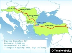 Nabucco aims to carry some 31 bcm of gas from the Middle East and the Caspian Basin to the heart of Europe, but lack of an Iranian spur would require the construction of a pipeline along the Caspian Sea bottom from Turkmenistan (or Kazakhstan) to Azerbaijan, then across the Caucasus to the Georgian-Turkish border.
