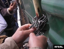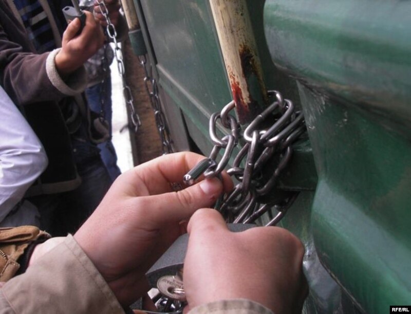 The journalists told RFE/RL they intentionally chained themselves to the train that goes from Europe -- where press freedom exists -- to Russia, where they said it is limited. They added that Ukraine is at a crossroads between Russia and the West.