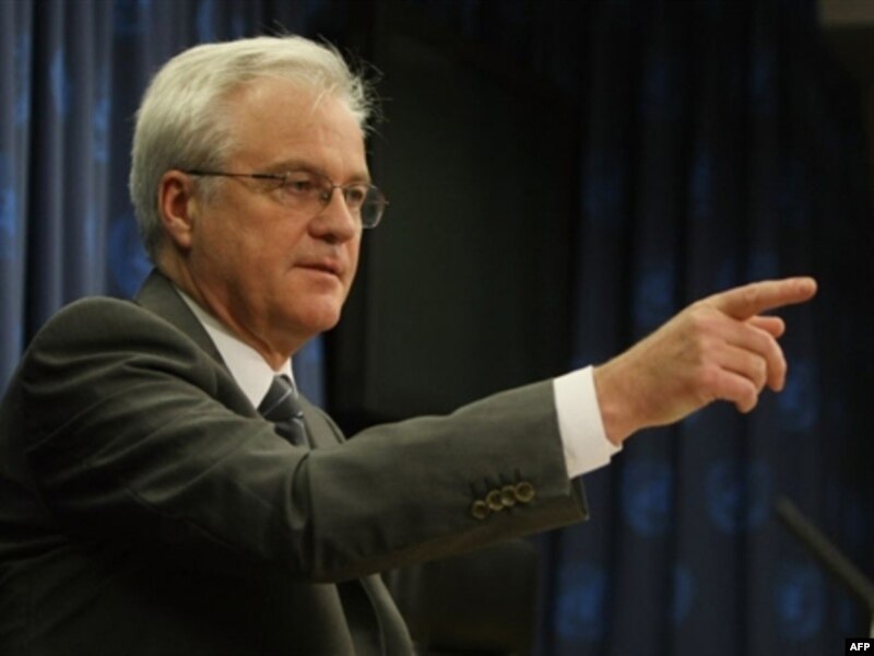 Vitaly Churkin, Russia's ambassador to the United Nations, speaks at UN headquarters on August 26. He rejected the idea that Moscow will now look for justification to annex South Ossetia.