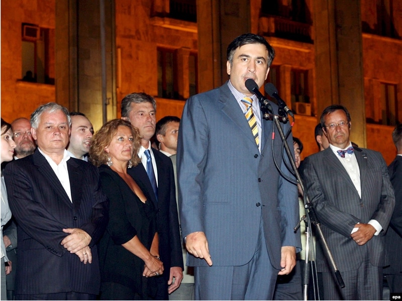 Standing with Saakashvili were not just his own people. In a striking display of solidarity, the leaders of five other former communist countries that had suffered Russian occupation -- Poland, Ukraine, Latvia, Lithuania, and Estonia -- shared the stage with the Georgian president.