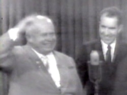 A U.S. television newsreel from 1959 shows Richard Nixon and Nikita Khrushchev touring the American National Exhibition in Moscow, along with excerpts of their lively exchange. Play