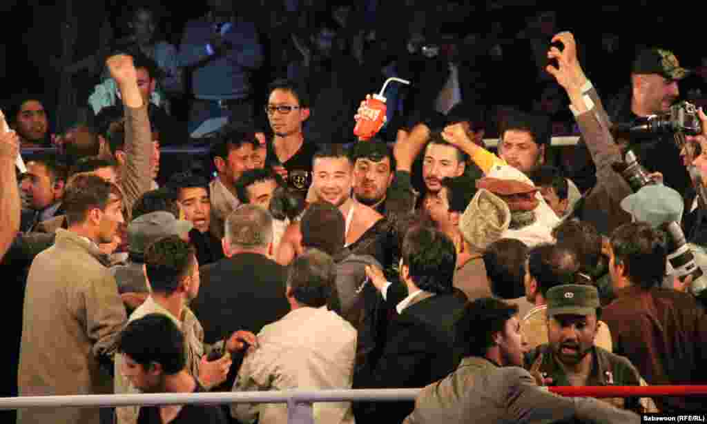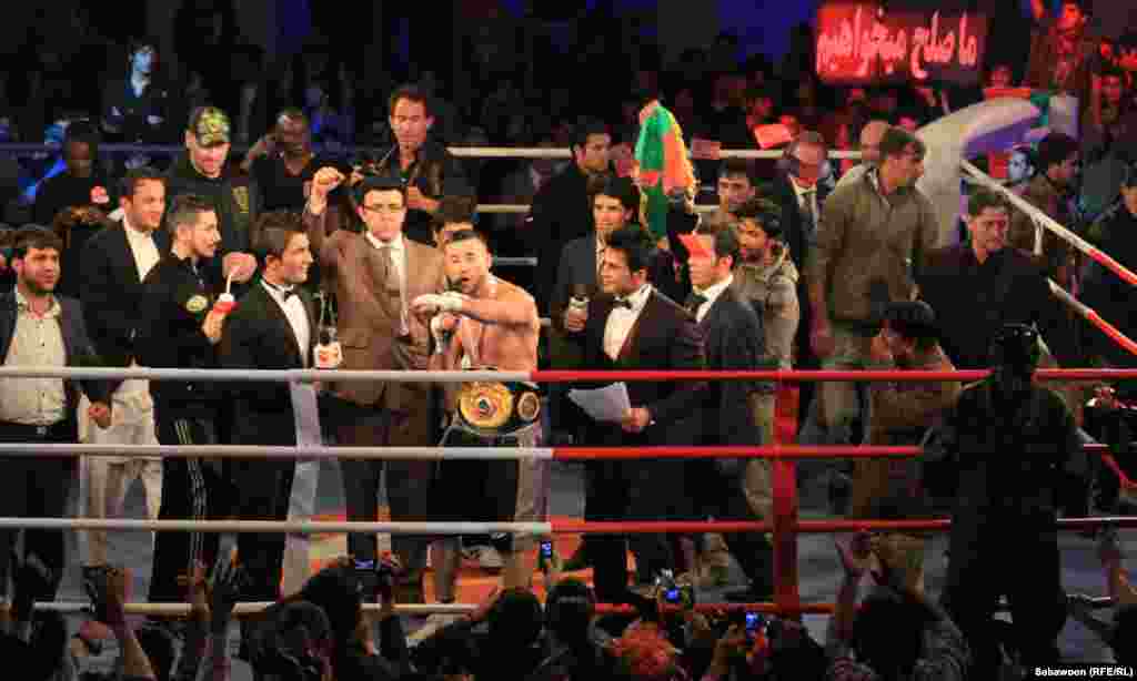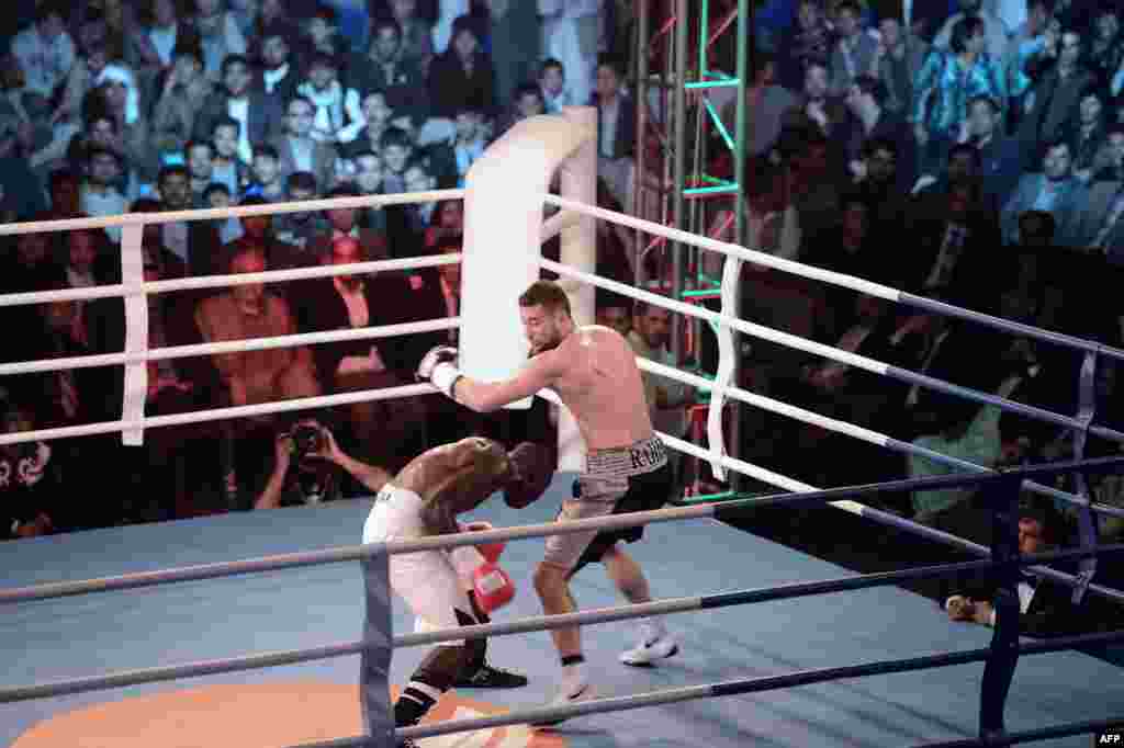 Afghan-German boxer Hamid Rahimi defeated Tanzania's Said Mbelwa on October 30 in Afghanistan's first professional bout in 30 years. Rahimi won the World Boxing Organization's unclaimed intercontinental middleweight championship by TKO in the seventh round before some 1,500 spectators in Kabul. (12 PHOTOS)