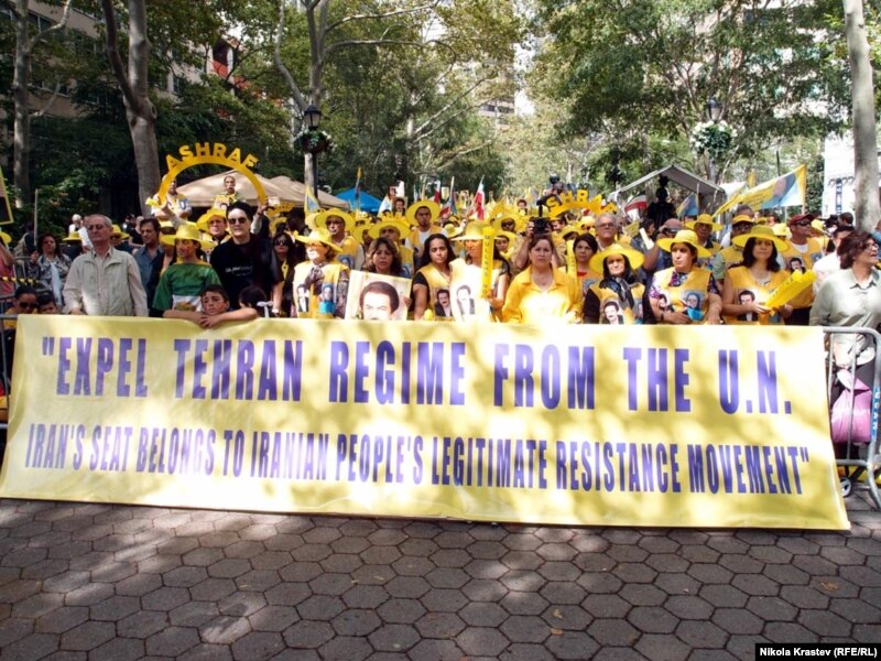 The rally was organized by the Association of Iranian-Americans in New York and took place on Dag Hammarskjold Plaza, across from the sprawling UN complex on the East River. Speakers included former U.S. Homeland Security Secretary Tom Ridge and former U.S. Ambassador to the UN John Bolton.