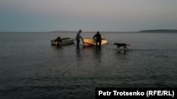 "This is normal for summertime," Serzhan says of the catch, though he sounds disappointed. A little further away, another boat is bobbing on the waves. It looks as if this competitors' catch is not very rich either.