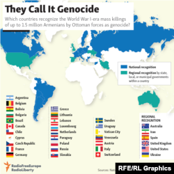 Twenty-seven other countries and the majority of U.S. states have joined Armenia in formally considering the killings to be genocide.