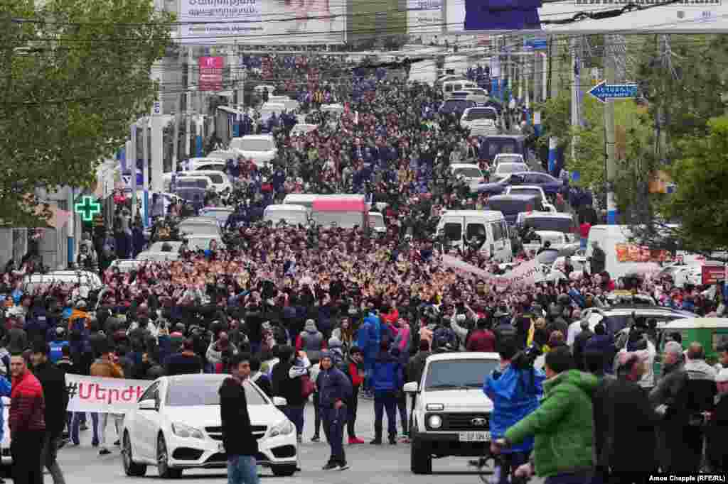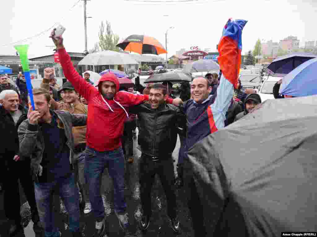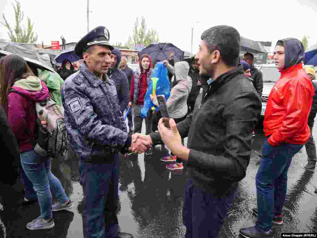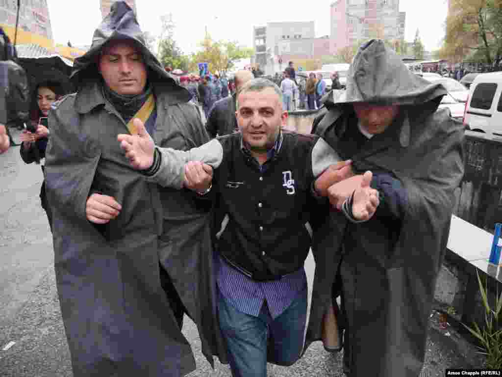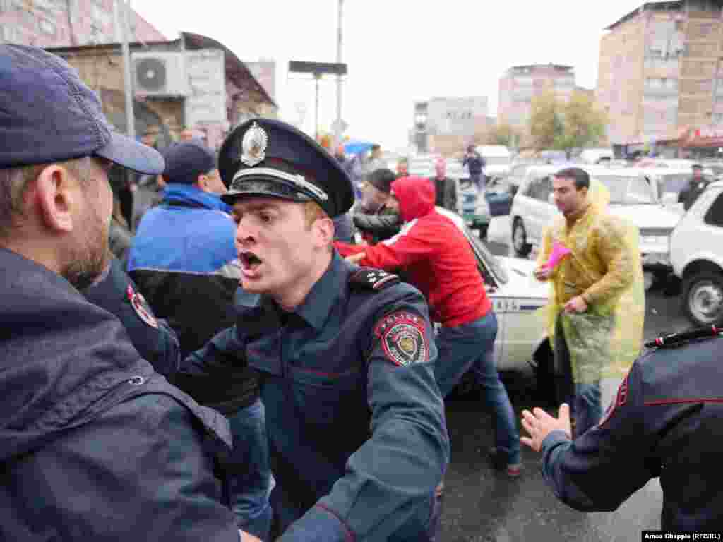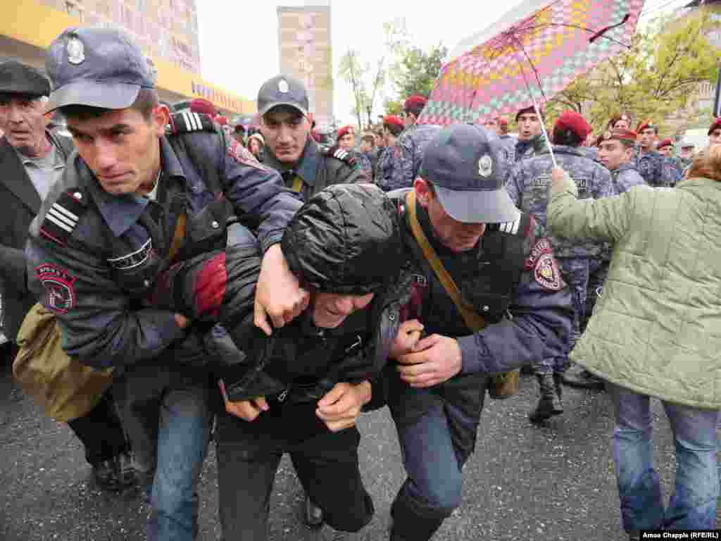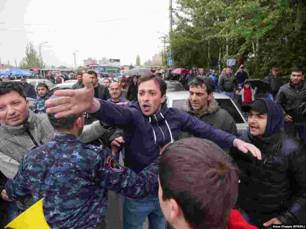 On the ninth day of demonstrations in Yerevan on April 21, Armenian protesters confronted police and police detained more protesters in a cold and rainy capital. The demonstrators oppose a restructuring of the country’s governing system that has enabled Serzh Sarkisian -- the newly appointed prime minister -- to stay in power after his 10-year stint as president ended two weeks ago.